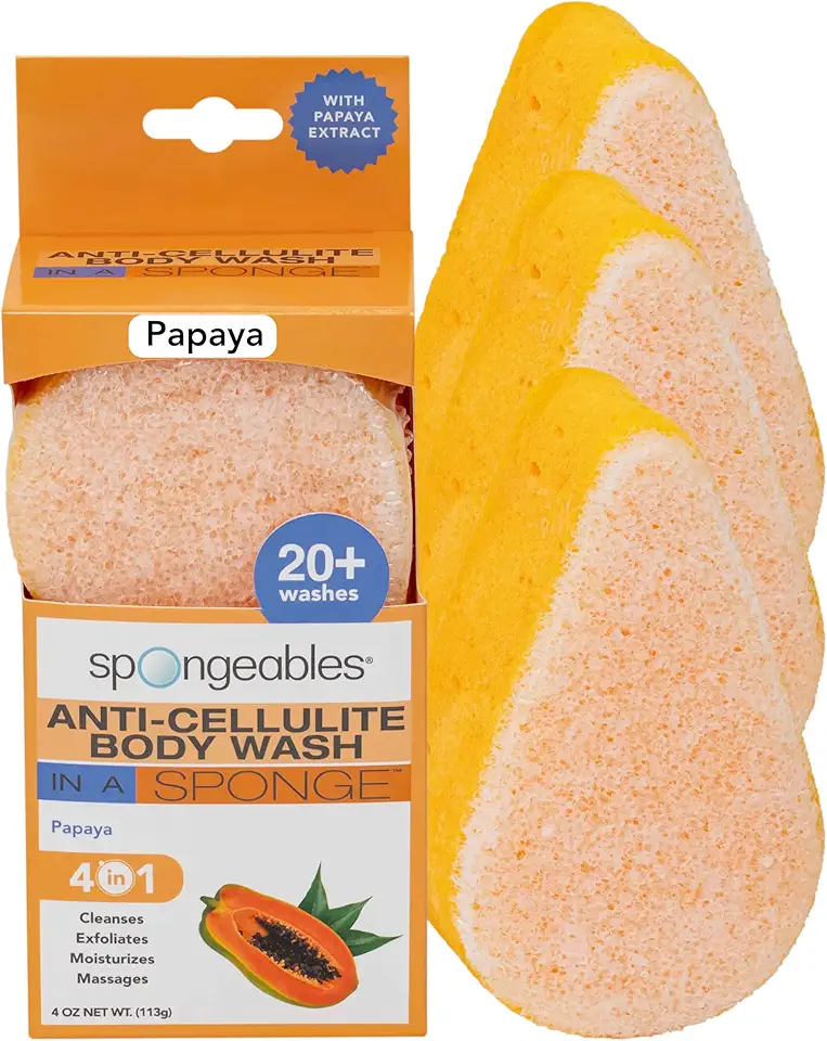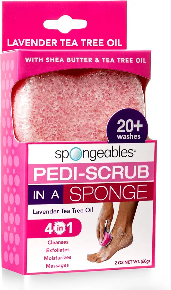 Products Pedi Scrub Foot Exfoliating 20+ Wash Sponge Spongeables Pedi Scrub Sponge (single, 0.4 lbs). Exfoliates rough feet, soothes & softens. 20+ washes. 1-year warranty. Shop Now Anti-Cellulite Body Wash in a Sponge, 20+ Washes (Variant) Spongeables Anti-Cellulite Sponge (single, 0.4 lbs). Targets cellulite, hydrates, gentle scrub. 1-year warranty. Shop Now Body Wash in a 20+ Wash Sponge, Sweet Grapefruit, 3 Count Spongeables Sweet Grapefruit Body Wash Sponge (3-count, 1.2 lbs total). Bright citrus scent, 20+ washes, moisturizing exfoliation. 1-year warranty. Shop Now